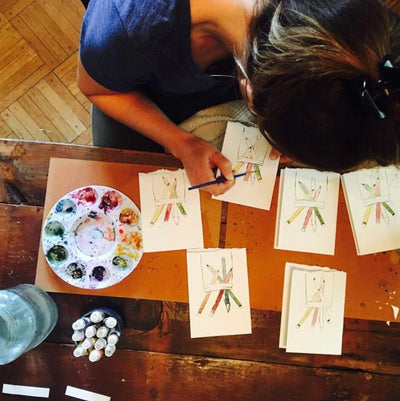 In the beginning, we painted every single card ourselves on our favorite watercolor paper. And to size them, we tore each sheet by hand.