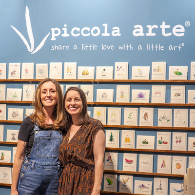 Piccola Arte began in 2017 as a heartfelt collaboration between sisters Steph and Lizzy — hand-painting cards inspired by love, creativity, and connection. What started as a small Etsy shop has grown into a nationwide brand, while remaining true to its handmade spirit and eco-conscious values.